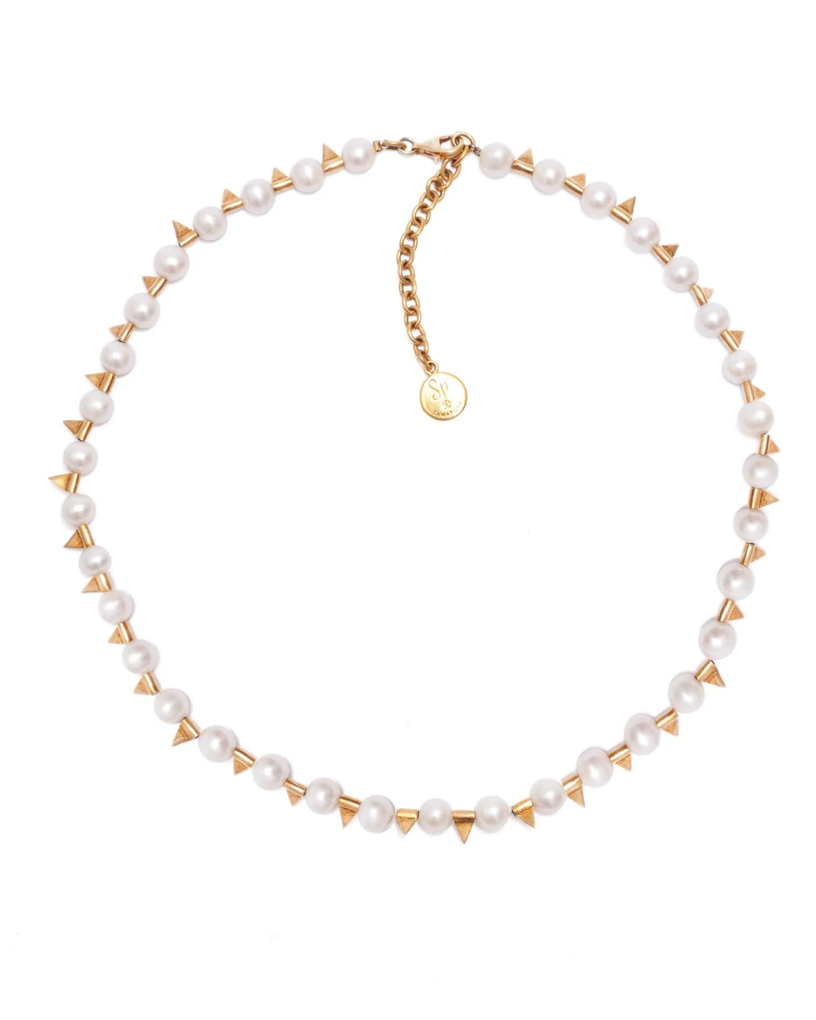 Fresh Water Pearl with Stud Beads Necklace | Gold